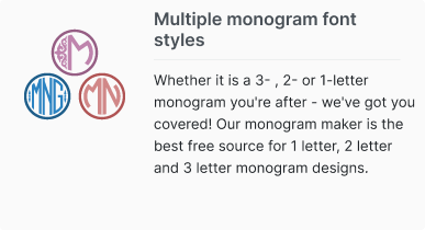 Make a monogram effortlessly and FREE with an extensive range of fonts and frames available anywhere. Visit our monogram maker site to try it now!